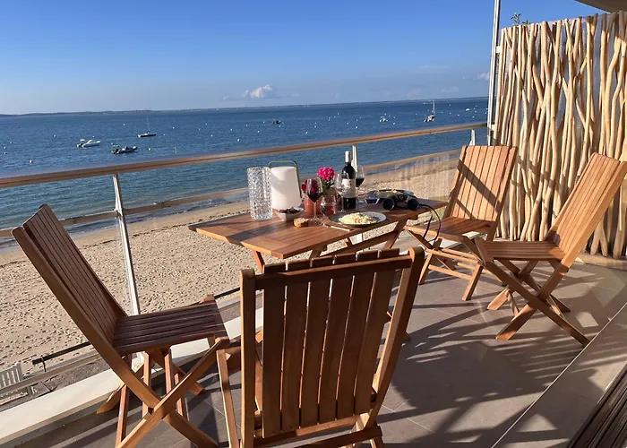 Пляжні апартаменти Premiere Ligne Acces Prive Et Direct A La Plage Vue Mer Arcachon, що пропонують пішохідні тури, розташовані у пляжному районі Аркашона. З вікон цих пляжних апартаментів відкривається вид на море, і є тераса.